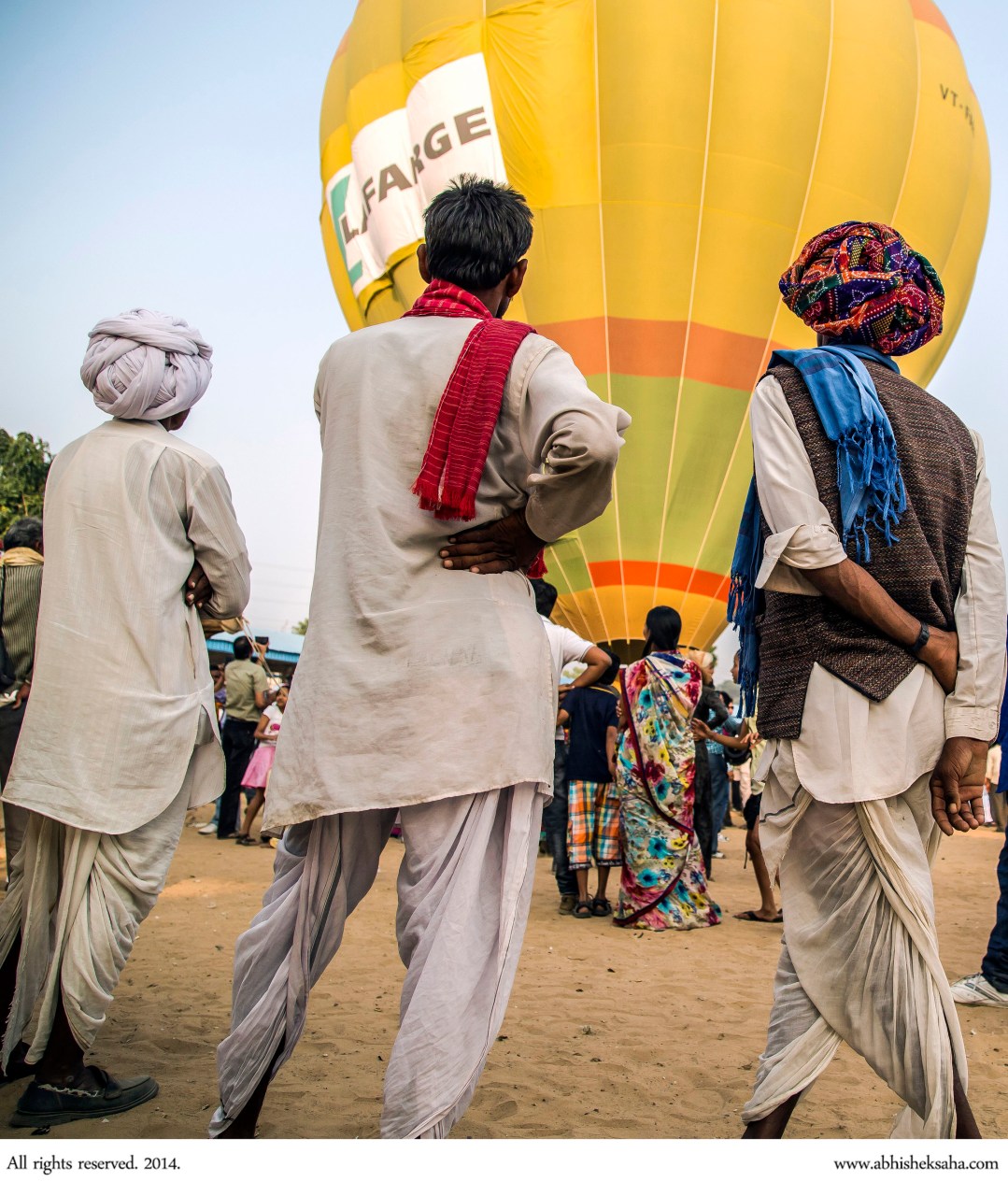 Locals observe the launch of a hot-air balloon. Published November 9, 2014 at 2378 × 2822 in Pushkar Mela is much more than just camel trading ← Previous Next →